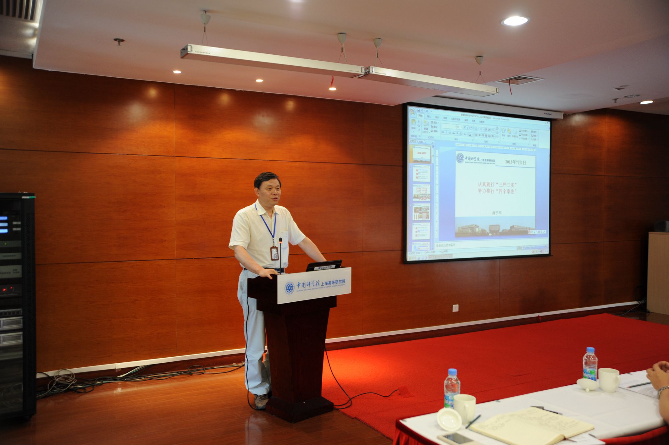 2015年7月1日,是中国共产党成立94周年纪念日,中国科学院上海高等研究院在综合楼505会议室举办党委书记讲“三严三实”专题教育党课,高研院“两委”委员、支部书记、管理骨干及正高级以上科研骨干参加了学习。高研院党委副书记、纪委书记王茂华主持会议。