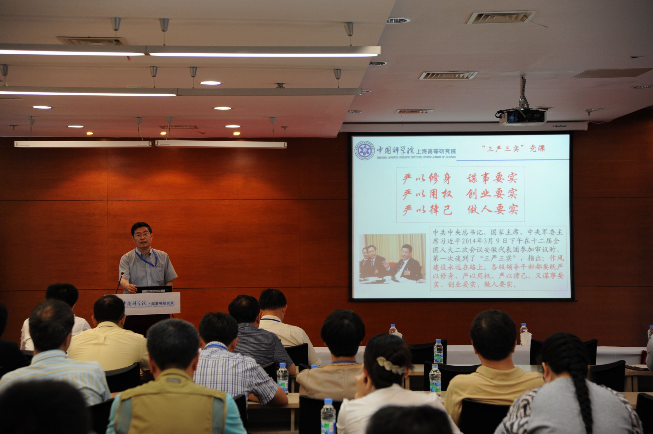 2015年7月1日,是中国共产党成立94周年纪念日,中国科学院上海高等研究院在综合楼505会议室举办党委书记讲“三严三实”专题教育党课,高研院“两委”委员、支部书记、管理骨干及正高级以上科研骨干参加了学习。高研院党委副书记、纪委书记王茂华主持会议。