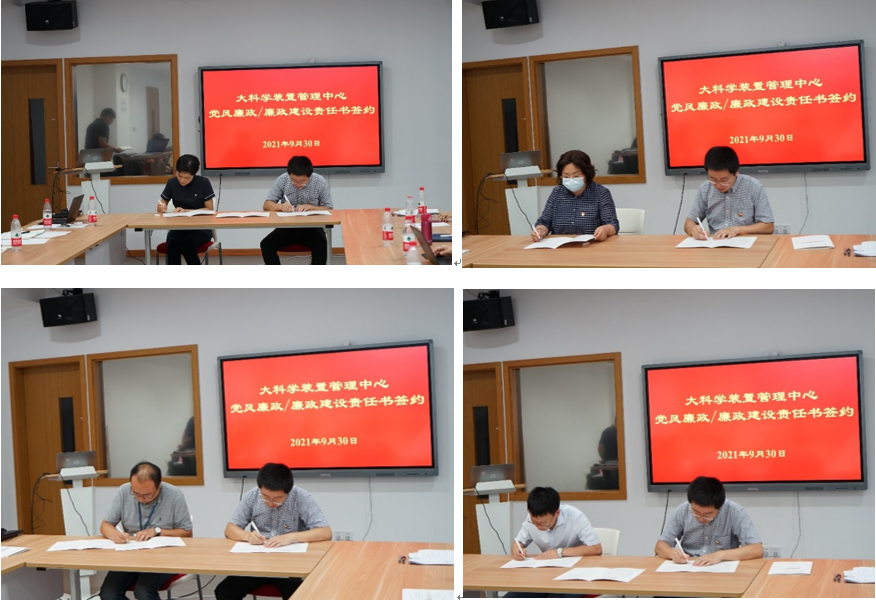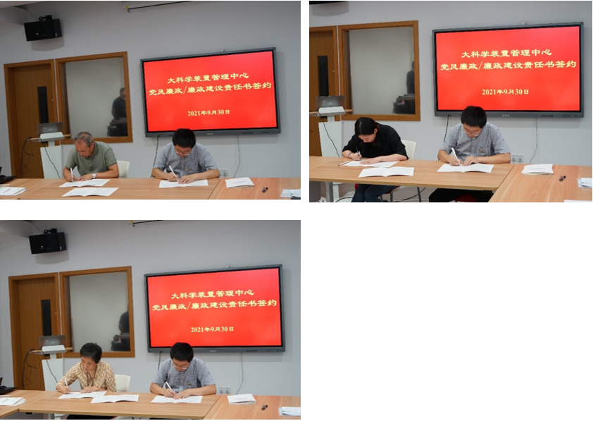 管理中心党支部同期开展了党风廉政学习和责任书签约活动。屈炜作了“明纪律知敬畏 存戒惧守底线”的党风廉政专题党课,党支部纪律委员薛幼菲对高研院《廉洁从业“负面清单”》13方面内容进行了详细介绍。屈炜还同管理中心副主任、各管理部主任分别签订了个性化的党风廉政/廉政责任书。