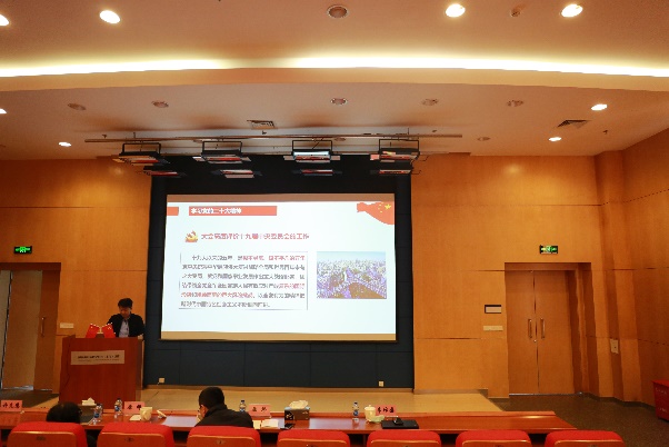 大科学装置管理中心党支部书记、副院长屈炜就本次宣讲学习心得在讨论交流环节发言。屈炜号召参会党员同志要认真学习、充分领会二十大精神,在面对急、难、险、重工作中能够迎难而上、勇挑重担,发挥党员先锋模范作用,在日常工作中能够知行合一、精益求精,主动担当作为。
