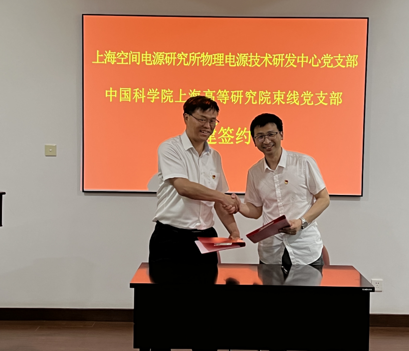 会上,刘平对上海空间电源研究所物理电源技术研发中心党支部党员同志的来访表示热烈的欢迎。王训春和束线党支部副书记金利民分别介绍了党支部基本情况,以及空间电源国家重点实验室和上海光源的发展历程、核心技术、科研成果等情况,交流了以科研合作为抓手开展支部结对共建的思路。王训春和刘平分别代表双方支部签署了党支部共建协议书。