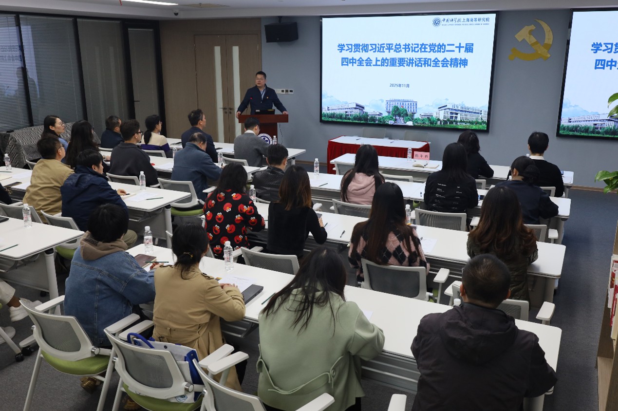 为深入学习宣传贯彻党的二十届四中全会精神,进一步推动党建工作与科研任务深度融合,2025年11月17日下午,中国科学院上海高等研究院(下面简称“上海高研院”)机关党支部与智能信息党支部在党群活动室联合开展“以联学促共建,以党建强科研”主题联学活动。上海高研院党委书记陈丰伟出席活动,两个党支部六十余名党员共同参加活动,活动由机关党支部书记、团委书记蒋巍主持。