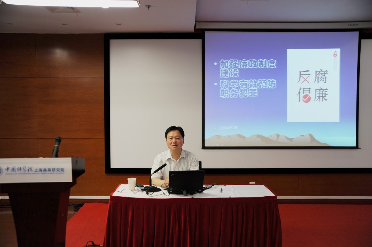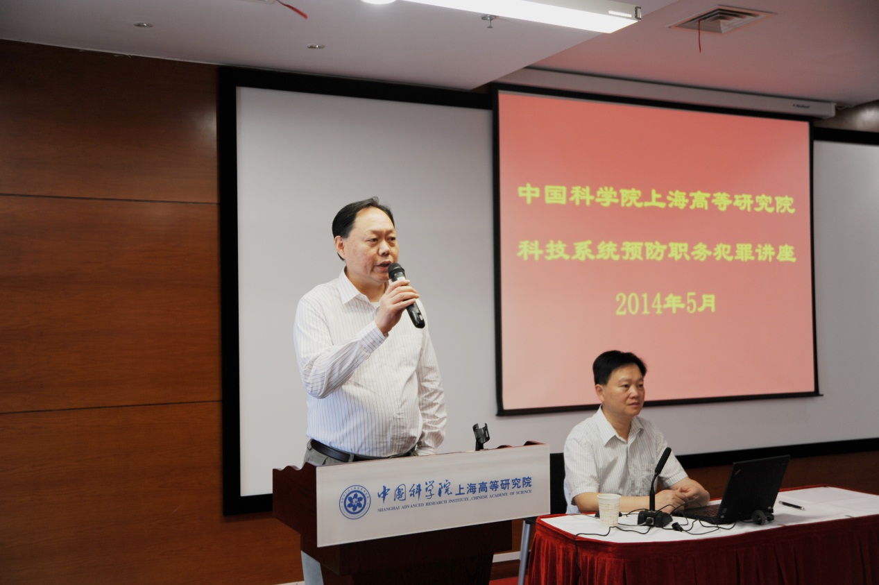为提高上海高研院职工的法制观念与拒腐防变的意识,营造风清气正的科研环境,5月29日上午,中国科学院上海高等研究院纪委特邀上海市浦东新区检察院检委会专职委员、职务预防犯罪处处长俞伟作科技系统预防职务犯罪讲座。讲座由上海高研院党委副书记、纪委书记王立根主持,上海高研院党委委员、纪委委员、各支部书记、支部委员、机关全员、副研及以上人员聆听了此次讲座。
