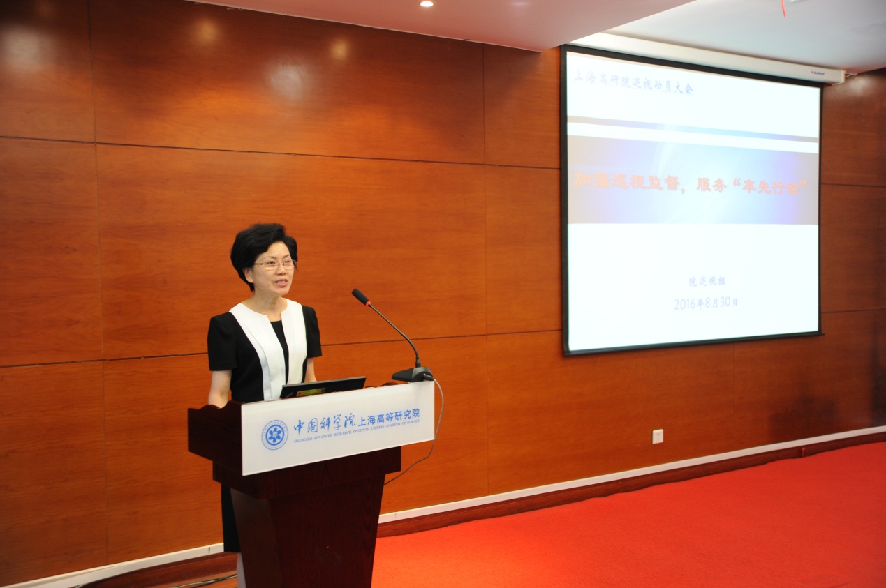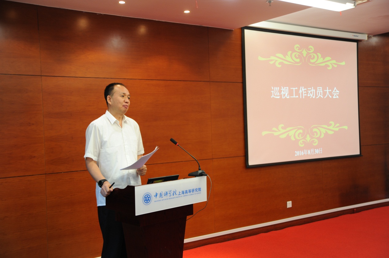 根据中科院巡视工作领导小组的部署和安排,中科院巡视组于8月30日—9月13日对上海高研院开展巡视工作。8月30日上午召开了中科院巡视组巡视上海高研院工作动员大会,高研院领导班子成员、各部门负责人、各研发中心(实验室)负责人、课题组长以及全体副高以上科研人员参加会议。会议由上海分院副院长田申荣主持。