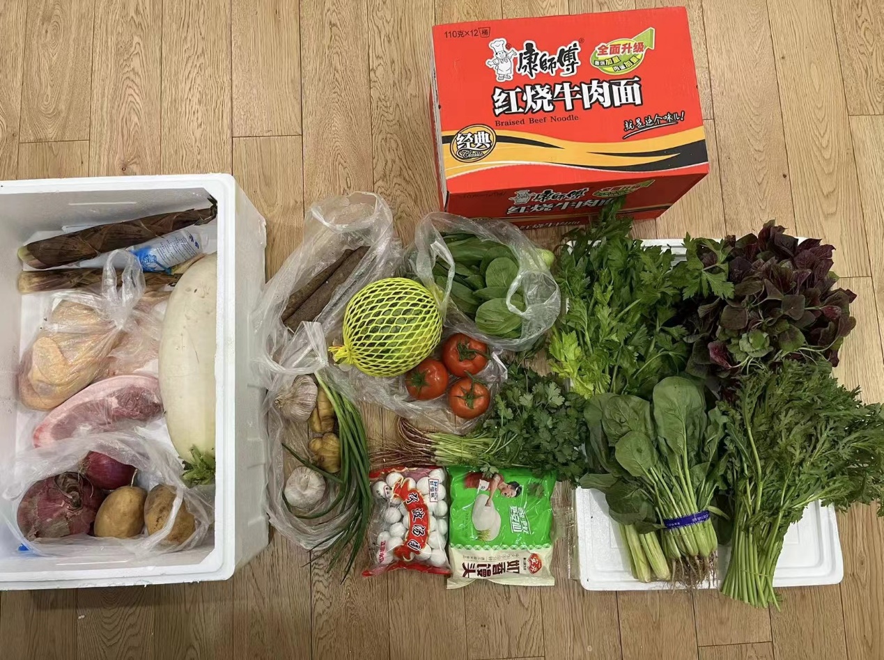 4月15日,经院工会全委会讨论决定,分批次进行爱心慰问,首批优先供给物资急缺困顿的职工。在收到“致全体工会会员的一封信”后,半数以上的职工考虑到,不过度占用紧张的城市物流运力,选择了自行克服困难、暂缓发放。首批慰问物资选配周到细致,既有方便单身不做饭员工的速食和方便食品,还有考虑到多口家庭员工的新鲜蔬菜和肉食,甚至连疫情期间有“LV”高奢之称的葱姜蒜也包括在内。