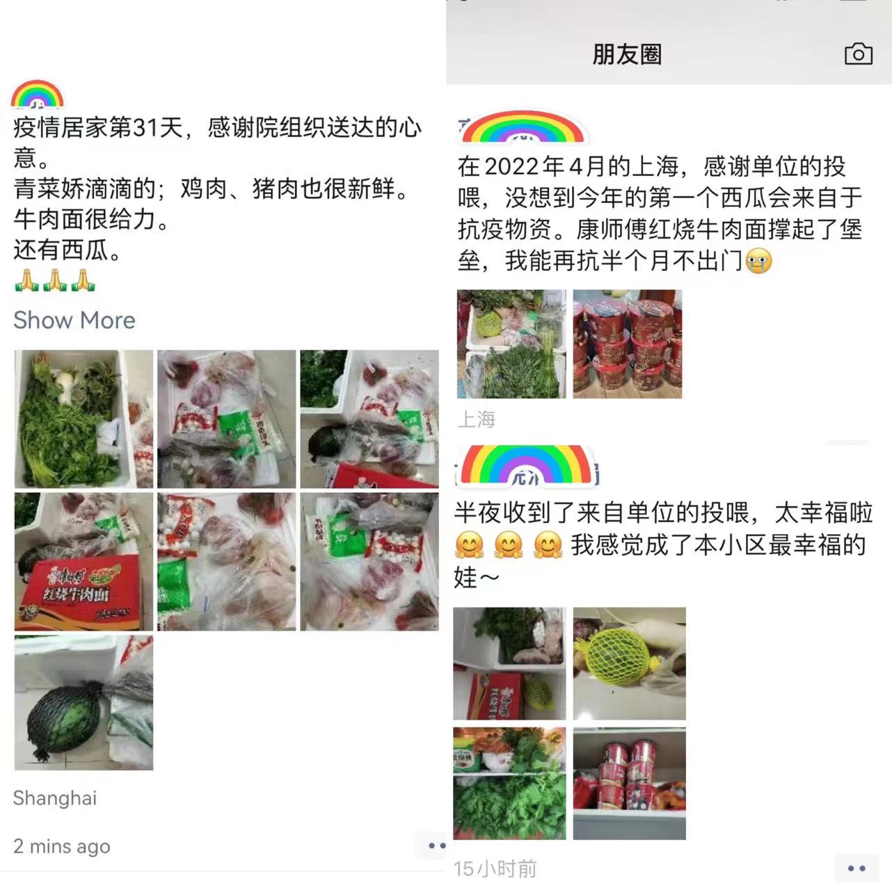 “爱心大礼包送得太贴心了,为我们想得很周全,青菜非常新鲜,还有猪肉和鸡肉”“没想到今年的第一个西瓜会来自于单位的爱心大礼包”“我感觉成了本小区最幸福的人”…次日,职工们感谢高研院爱心礼包的消息便如潮水般在各微信群和朋友圈刷屏,团结抗疫的氛围更加浓厚。爱心大礼包,不仅缓解了大家隔离期间的不安情绪,也让大家感受到了“家”的温暖,在团结一心的气氛中进一步促进了高研院的凝聚融合,提升了院所凝聚力和职工归属感,彰显出组织的强大韧性。