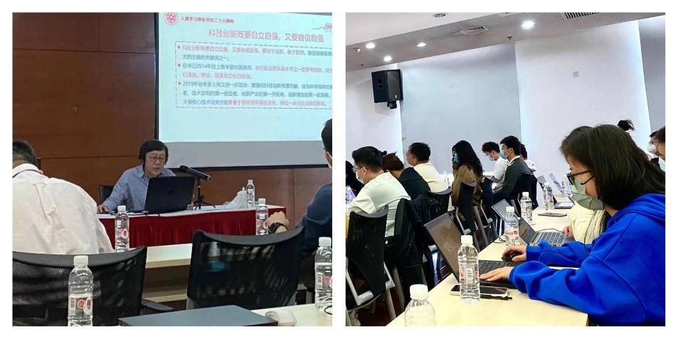 党委副书记、纪委书记唐铮给大家带来了“青春恰逢盛世,传承奋斗担当”专题报告,此次报告分为学习党的二十大精神、大力弘扬科学家精神、科研诚信典型案例教育等几个部分。