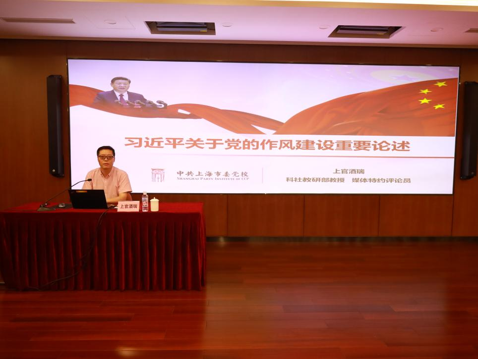 本次活动邀请了上海市委党校教授、上海市习近平新时代中国特色社会主义思想研究中心研究员上官酒瑞,作题为《习近平关于作风纪律建设的重要论述》的专题辅导报告。上官教授围绕中央八项规定精神学习教育及重大意义,以及如何以中央八项规定精神推进全面从严治党,深入阐述了作风纪律建设的重要内涵。