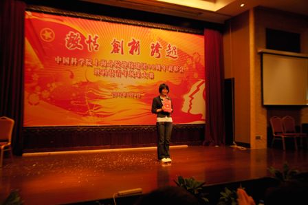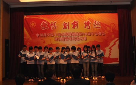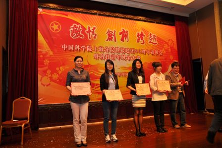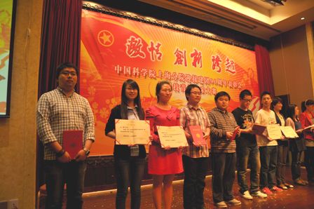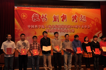 在“中科院上海分院迎接建团90周年表彰会暨青年风采大赛”中,党政办公室白璐、安全应急实验室马皛源分别获得 “中科院上海分院2011年度优秀共青团干部”和“中科院上海分院2011年度优秀共青团员”光荣称号。