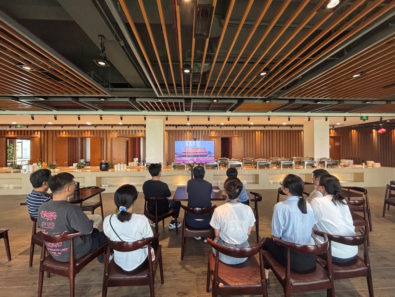 此次九三阅兵式,上海高研院在四个园区内设置了七个视频播放点,全院干部职工自发响应、同步观礼。当受阅方阵以整齐划一的阵型展示尖端国防装备时,科技工作者们深切感受到“大国重器”背后的科技支撑力量,更加坚定了突破“卡脖子”技术的决心,激发了将爱国情怀转化为科技创新的自觉,现场不时爆发出热烈掌声。