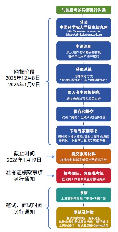 中国科学院上海高等研究院(以下简称“上海高研院”)为中国科学院大学(以下简称“国科大”)研究生培养单位,国科大2026年秋季入学博士研究生招生,统一实行网上报名。