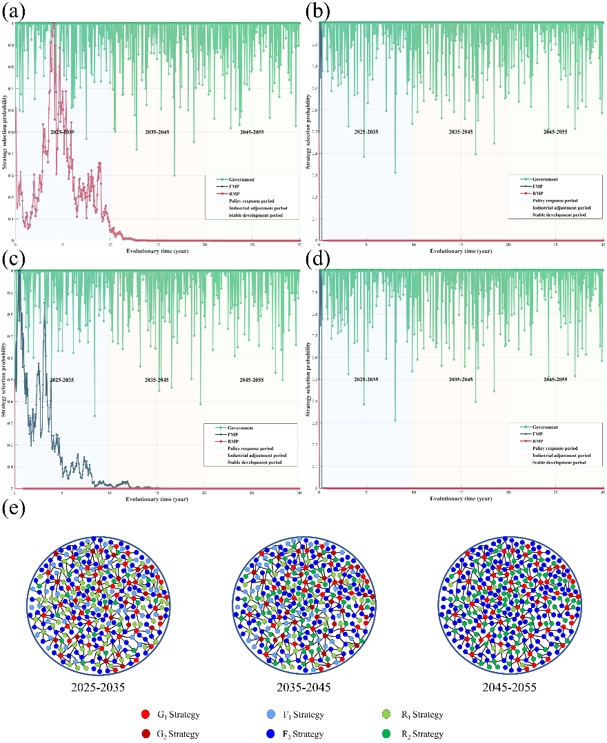 研究团队基于复杂网络理论与随机演化博弈框架,构建了涵盖政府、FMP和RMP的三方随机演化博弈模型,并引入高斯噪声刻画政策冲击等外部不确定性因素。结合二维蒙特卡洛模拟技术,模型实现了对2025—2055年甲醇生产技术演进过程的动态追踪。在模型构建过程中,通过多维参数校准,反映区域资源禀赋与技术成本的差异;同时,借助龙卷风图量化识别关键驱动因素,解析碳定价政策工具、市场反馈与技术学习的耦合效应。该方法突破了传统静态分析的局限,首次将“政策-技术-市场”纳入统一的演化分析框架,为跨主体利益协调与路径优化提供了量化工具。