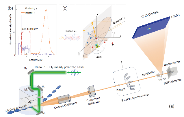 中国科学院上海高等研究院SLEGS(Shanghai Laser Electron Gamma Source)团队依托我国光子大科学设施——上海光源发展了基于逆康普顿散射的伽马束流装置研究,在国际上首次建成了基于斜入射(slant Compton scattering)模式的能量可调的伽马束流装置—激光伽马线站。同时,团队自主研制了极化伽马测量系统,为测量光子-电子斜散入模式光子极化性质的传递提供了关键的支撑与技术保障。