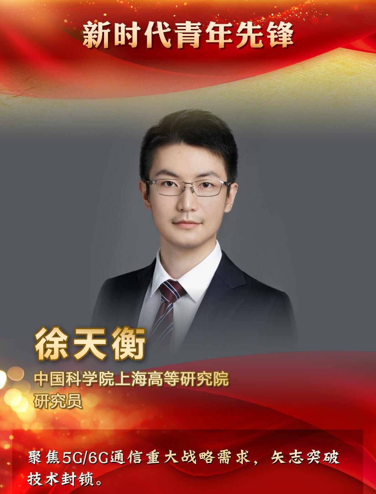 徐天衡研究员,主持多项信息领域重大任务,带领平均年龄不足30岁的团队,在5G/6G领域实现技术突破,首创跨系统异构信息直连交互等核心技术,实现弱环境应急传输技术领先。其研发的应急指挥系统已服务国内多地及“一带一路”20余国。他注重培养青年人才,为国家战略科技力 量输送骨干60余名,荣获上海市技术发明一等奖等17项荣誉,在国家急需的关键领域挑大梁、当主角,在实现高水平科技自立自强的征程中贡献青春力量。