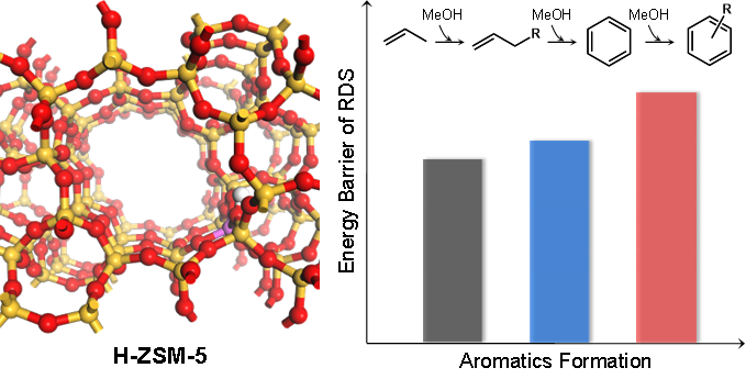 图2. ZSM-5分子筛内C1催化过程中芳烃生成的选择性控制机制