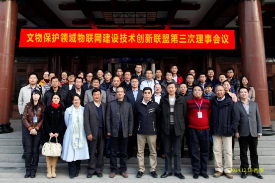 2014年12月17日至18日,第四届文物保护领域物联网应用与发展研讨会暨文物保护领域物联网建设技术创新联盟理事会全体会议在西安召开。会议主办方为国家文物局,中国科学院上海高等研究院和陕西省文物局协办,秦始皇帝陵博物院承办。国家文物局科技司副司长罗静、中科院上海高等研究院院长封松林、陕西省文物局副局长郭宪曾等领导出席会议。秦陵博物院院长曹玮、陕西文物保护研究院院长赵强、机械工业仪器仪表综合技术经济研究所所长欧阳劲松、中科院上海高等研究院文物保护实验室主任杨晓飞等业内专家参加了会议,还有来自全国文博系统、高等院校、科研院所、高新企业等相关单位的近百名代表参加了会议。