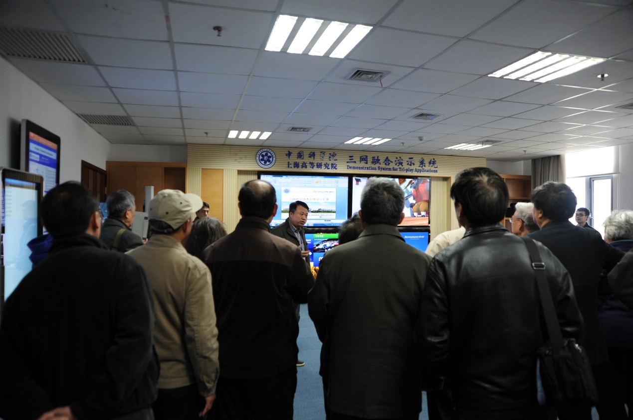 2015年4月14日,市科协党组书记、市科协副主席孙正心带领上海政协之友社一行24人调研中国科学院上海高等研究院(简称上海高研院),调研组对中科院低碳转化科学与工程重点实验室、三网融合项目示范演示系统进行了深入细致的参观、调研,并听取了封松林院长对上海高研院整体建设过程及发展近况的介绍,调研组对上海高研院在较短时间内能取得迅速发展表示赞赏。党政办公室主任贾斌同志陪同调研。
