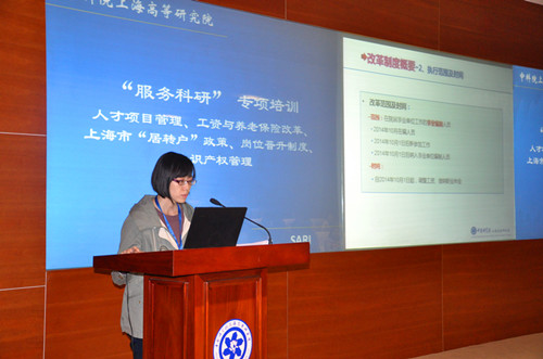 此次培训主要以规章制度、管理流程的深入解读和介绍为主,人力资源处漆东奇老师、孔洁老师、啜春雷老师、科技发展处竺琳老师分别就人才项目申报、工资及养老保险改革、上海市“居转户”政策及高研院岗位晋升制度、知识产权管理作了详细介绍,并对大家现场提出的问题进行了一一解答。