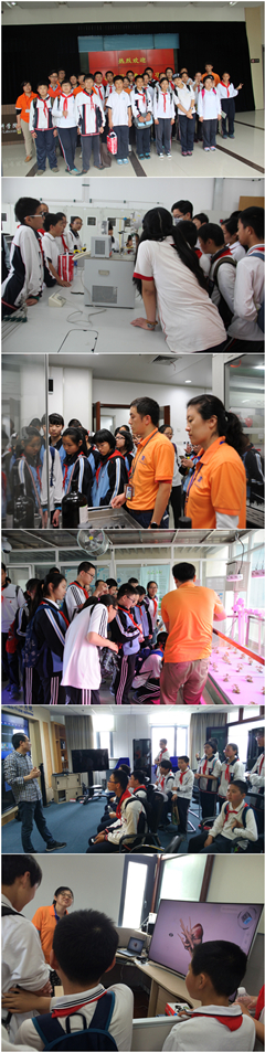 本届活动开放了中国科学院低碳转化科学与工程重点实验室、新媒体无线技术研究中心、分析测试中心二恶英实验室以及农业物联网智能温室等科研场所。在近20名科普志愿者的引领下,参观学生近距离探秘低碳转化科学与工程重点实验室研发平台、认识大型先进仪器和设备后观看志愿者进行演示实验,对于还未开设化学课的学生们来说,一切都是那么神奇;在志愿者的讲解下,参观学生还了解到工业化基质培育系统和鱼生共生系统、三网融合成果、以及二恶英样品检测过程等,体感游戏、VR游戏操作等趣味互动体验最获学生们青睐。