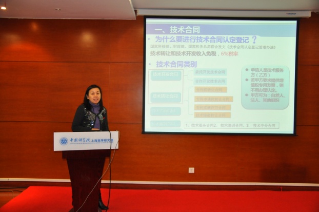 2016年12月14日,中科院上海高研院科技发展处组织了技术合同实务、《公共技术服务中心管理办法(试行)》、《修缮购置专项工作管理办法》培训交流会。本次培训首先由项目主管高昆进行了技术合同的培训,对技术合同的定义等相关情况做了详细的说明,并对具体的填写范例进行了细致的解读;科技装备主管李晓贤就《公共技术服务中心管理办法(试行)》和《修缮购置专项工作管理办法》进行了详细的解读,并就所级中心相关的中科院仪器共享平台的使用进行了全过程的介绍。