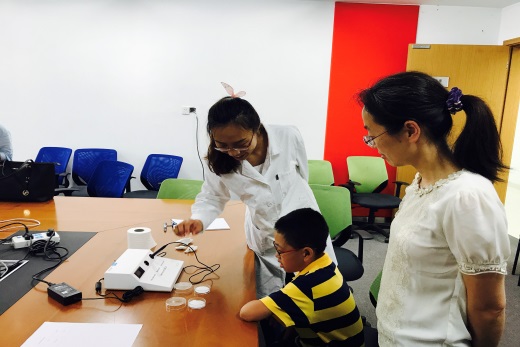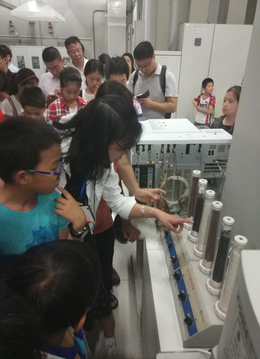 活动以科普报告、实验室参观、科学实验展示、科学探究课题等多种形式进行。徐浩煜副研究员作了主题为“飞行、模拟飞行和虚拟现实”的科普报告,以视频加提问的形式深入浅出的介绍了民航发展简史、飞机飞行及基础操纵原理以及基于VR的模拟飞行等内容,现场气氛热烈,小观众们踊跃回答问题,最先答对问题的几个小观众更受邀进入实验室现场体验了基于虚拟现实的模拟飞行,在玩中收获了科学知识。随后的实验室参观活动中,中科院低碳转化科学与工程重点实验室的志愿者们介绍了中心的定位、主要研究方向和实验室大型仪器设备,现场演示的“魔术茶水”、“水中花园”、“吸热反应”等趣味小实验令参观的小观众们兴奋不已;绿色化学工程技术研究中心精心设计了“生活中的摩擦学”和“奇妙的微生物”等两个科学探究课题,曾祥琼研究员和孙俊松研究员分别为参观的老师和家属讲解了实验背景及原理,并与志愿者们一起耐心地指导实验操作过程。