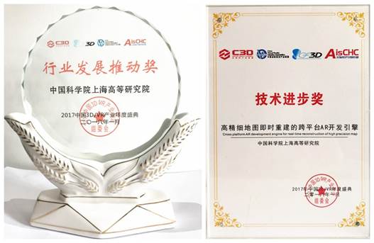 中科院上海高等研究院获得的“行业发展推动奖”和“技术进步奖”