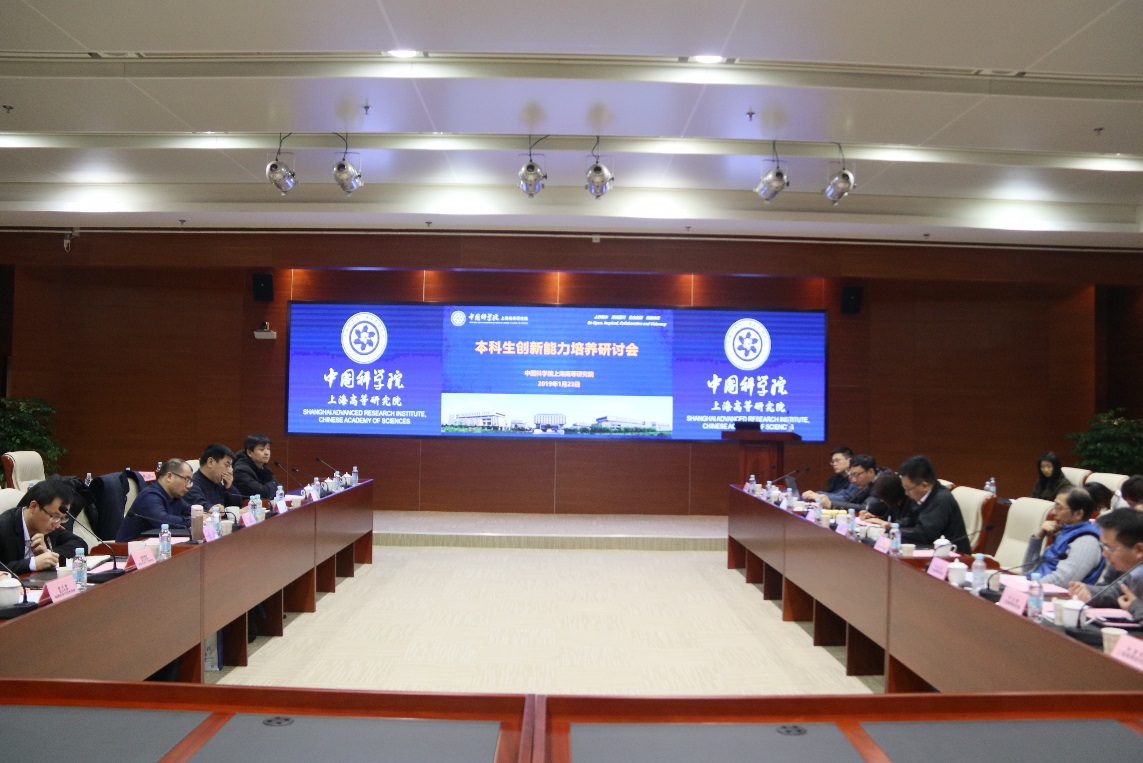 为促进各高校在本科生创新能力培养方面的经验交流与学习,提升创新型人才培养质量,2019年1月23日下午,依托中科院上海高等研究院(以下简称“高研院”)首次大学生寒假创新实践活动,高研院邀请到上海科技大学、宁波诺丁汉大学、浙江大学、武汉大学、中南大学、华东师范大学、西北大学、郑州大学等高校相关学院领导和老师,在综合楼二楼报告厅召开本科生创新能力培养研讨会,高研院副院长王茂华以及各领域导师代表参加会议。会议由高研院研究生处处长王娜主持。