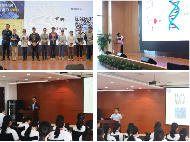 “地球能源及微生物”、“趣说气候变化”、“地球自拍史——卫星遥感”、“神奇的生物——从基因到蛋白质”,来自绿色化学工程技术研究中心、碳数据与碳评估研究中心、国家蛋白质科学研究(上海)设施及微小卫星创新研究院的专家们,通过四个科普报告深入浅出地为同学们解密微生物与能源、二氧化碳与气候变化、卫星与遥感技术、基因和蛋白质等科学问题,思维敏锐的同学们纷纷提问,现场气氛分外活跃。
