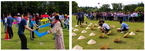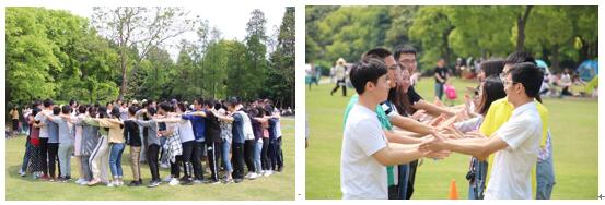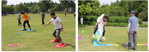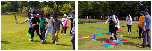 下午的联合对抗赛在樱花大草坪上热烈进行,同学们在活泼有趣的热身活动之后分为八只队伍,两家单位的同学们在活动中都大展身手,尽情挥洒智慧与汗水,在场上留下了一幕幕动人风采。