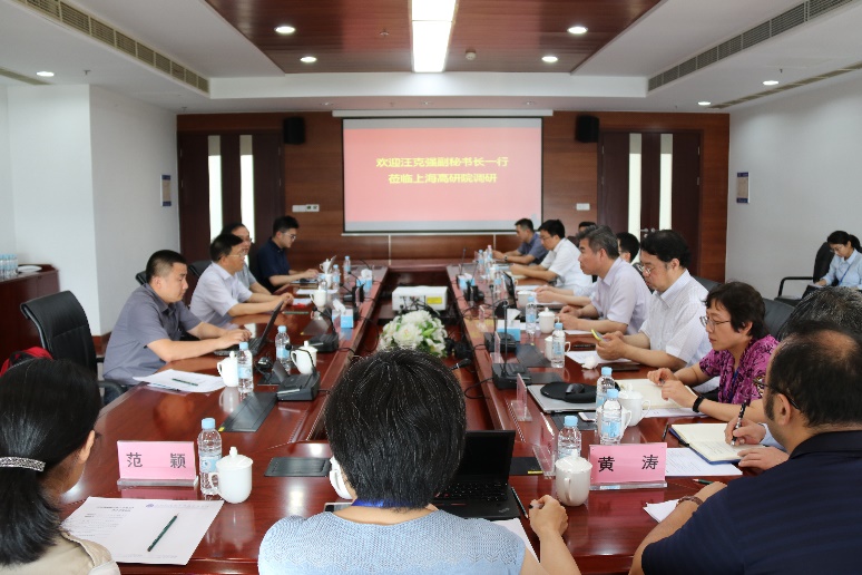 2019年7月23日,中国科学院副秘书长汪克强到中科院上海高等研究院调研,考察了先进能源系统与装备研究与发展中心,听取了党委书记朱志远关于上海高研院工作和大科学设施划转情况的报告,并与上海高研院领导班子、部分科研及管理骨干进行座谈交流。