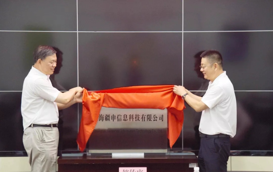 会上上海高研院研究员封松林和新能源集团党委委员、副总经理高伟东共同为上海疆申信息科技有限公司(以下简称“上海疆申”)揭牌。上海疆申是新能源集团全资子公司风能研究所与上海高研院孵化平台上海中研宏科软件股份有限公司共同出资成立,旨在进一步加快双方合作项目落地;并以上海疆申为合作平台,推动高研院成果产业化培育发展,探索院企合作新模式。
