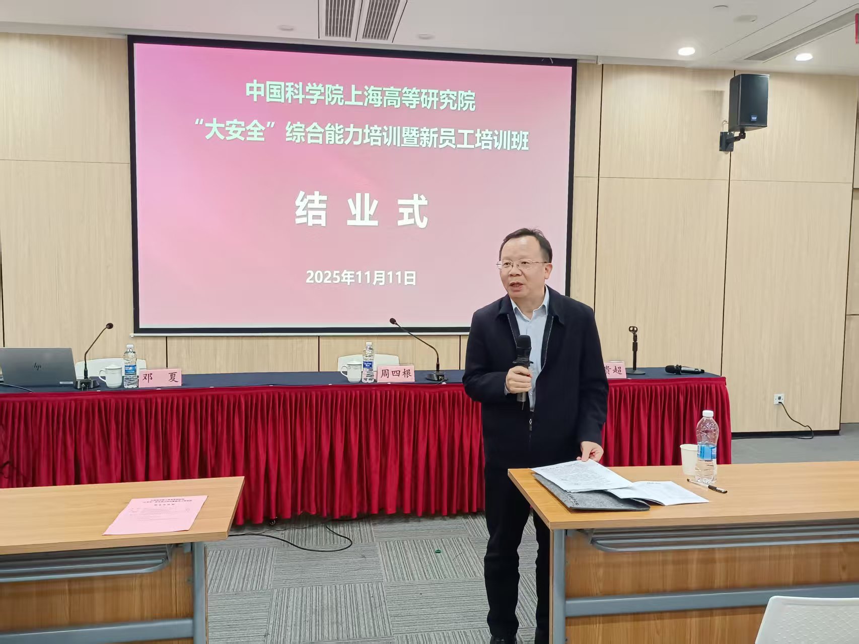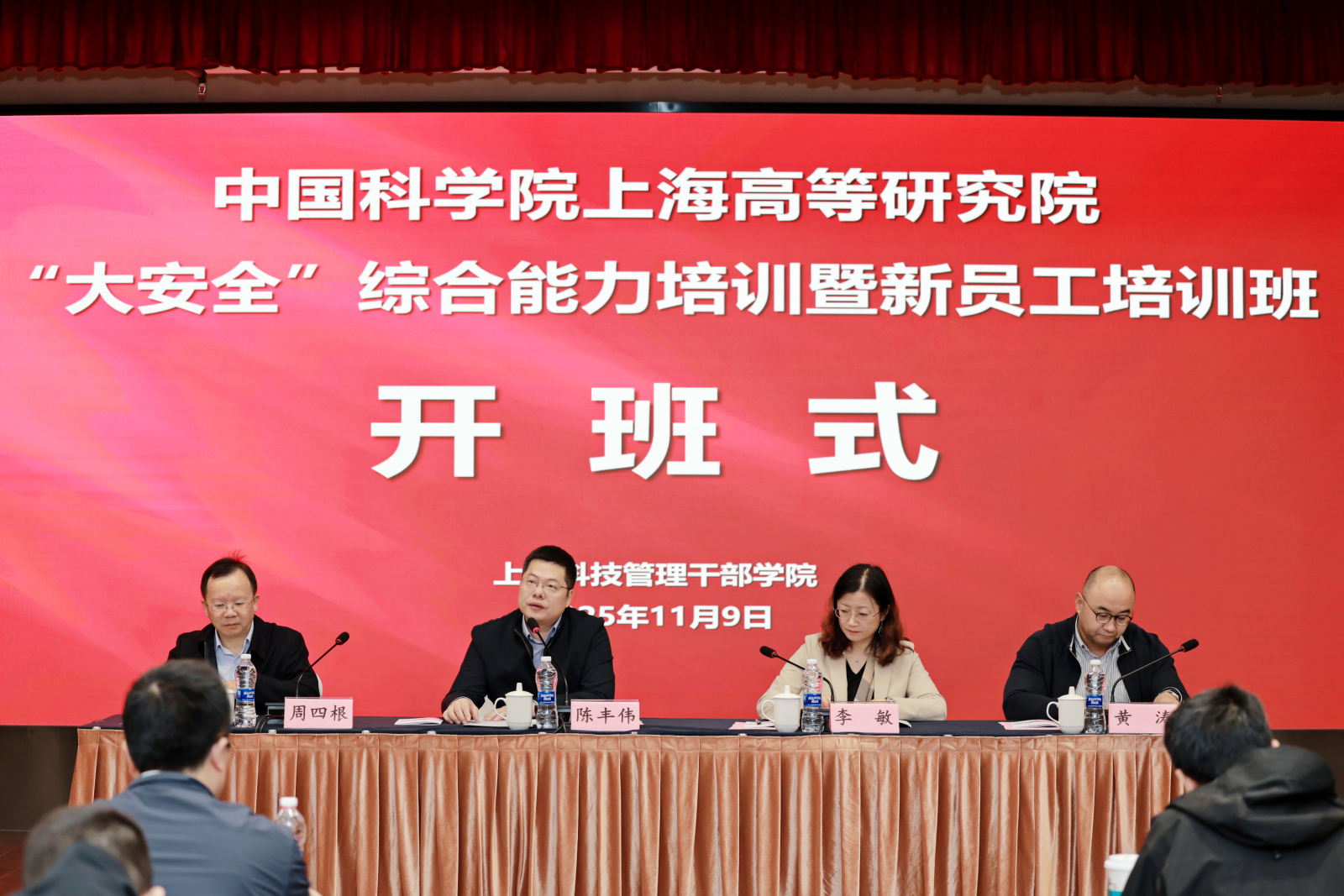 为全面提升职工安全风险意识,增强一线科研人员的安全操作与应急处置能力,系统构建“大安全”防护能力体系。2025年11月9日-12日,中国科学院上海高等研究院(以下简称上海高研院)在上海科技管理干部学院组织开展了为期3天的封闭式集中培训。上海高研院党委书记陈丰伟,副院长周四根,院务委员、综合管理部部长黄涛,以及上海科技管理干部学院党委书记李敏出席开班仪式。综合管理部、党建人才工作部、研究生处和技术安全中心等相关负责人共同参加,80名新职工和新聘安全员全程参与培训。