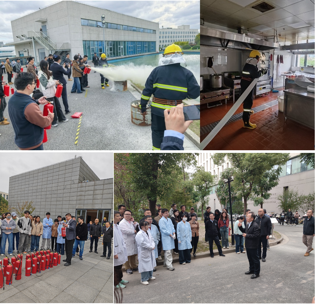培训后期,全体学员赴大科学设施相关线站、食堂与部分化学实验室等场所开展综合消防演练。演练涵盖应急疏散与消防器材实操两大模块。在专业人员的指导下,学员们依次进行灭火器与灭火毯的实际操作,直面模拟火源,掌握扑救初起火灾的关键技能。演练过程紧张有序,有效提升了参训人员在紧急状况下的心理素质与实战能力。