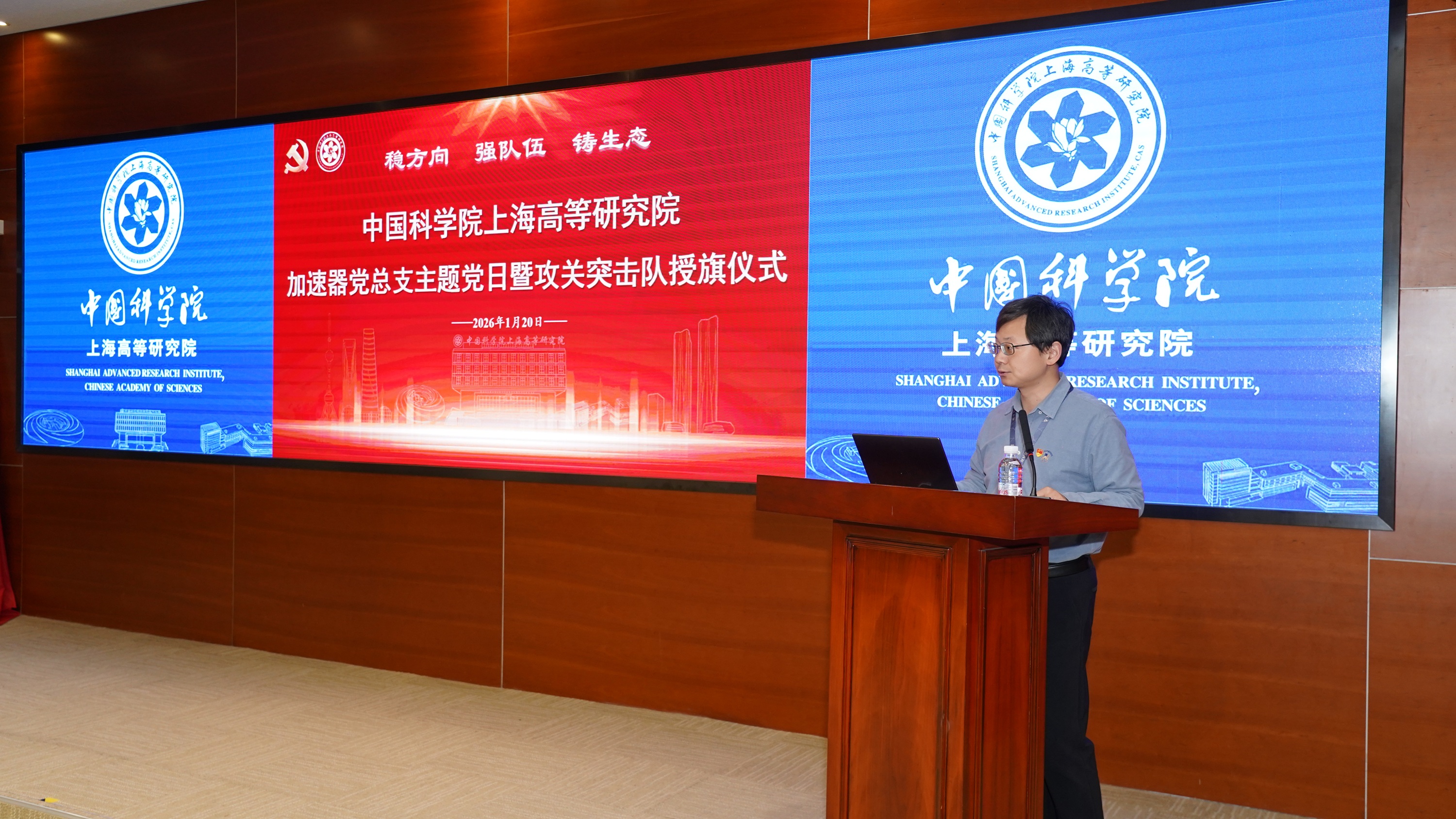 2026年1月20日,中国科学院上海高等研究院加速器党总支在海科路99号综合楼二楼会议室召开主题党日活动暨突击队授旗仪式,旨在夯实党组织建设,推动党员在重大任务中积极发挥先锋模范作用。党委书记陈丰伟、副院长周四根、加速器党总支书记刘波等出席活动,活动由党建人才工作部部长沈芳菲主持,加速器党总支近100人参加活动。