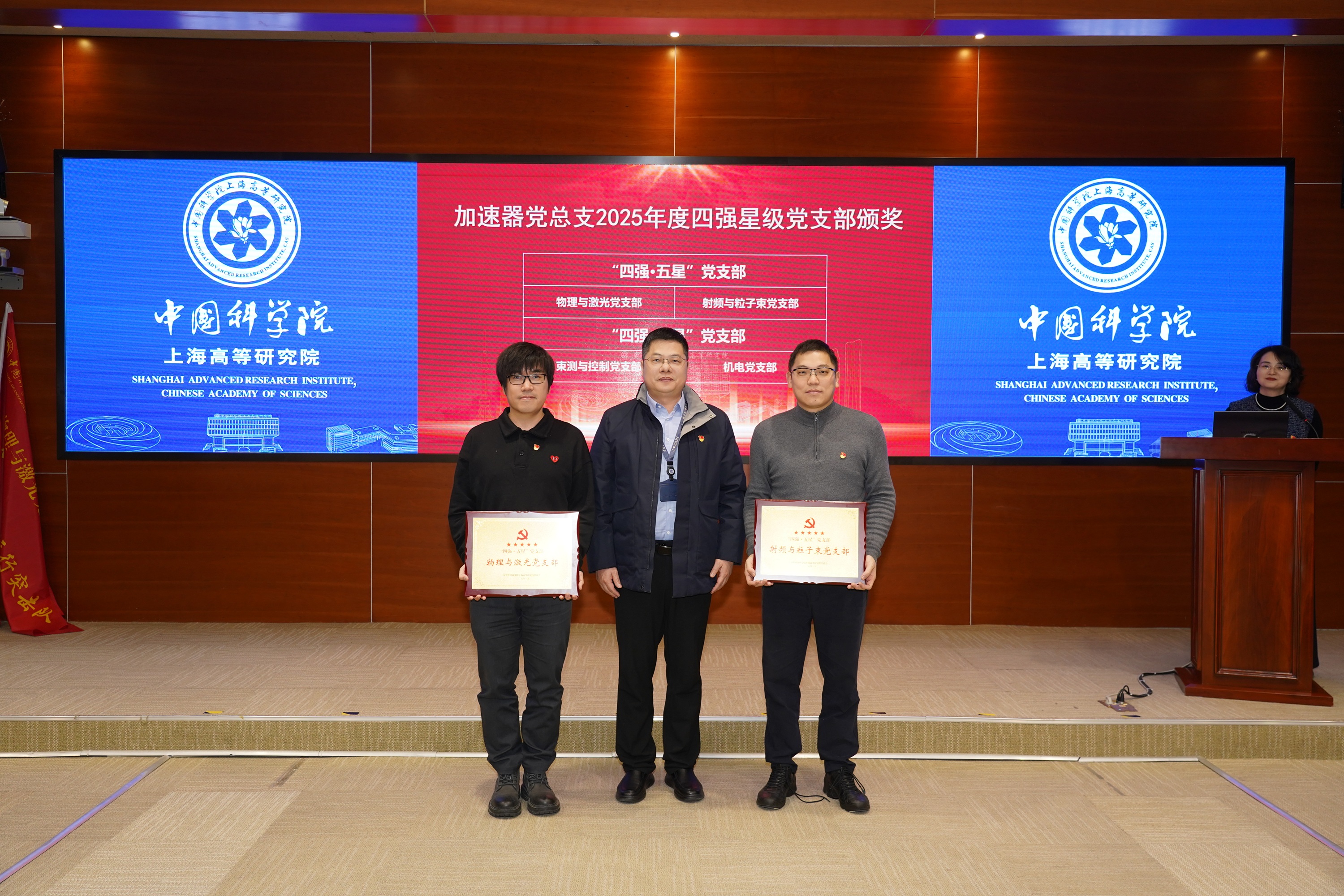 随后,沈芳菲宣读了“四强星级”党支部评选结果。在热烈的掌声中,陈丰伟为荣获“四强·五星”党支部的物理与激光党支部和射频与粒子束党支部颁发奖牌。这一荣誉不仅是对两个党支部过往工作的高度认可,更是继续在科研攻关道路上勇毅前行的强劲动力。